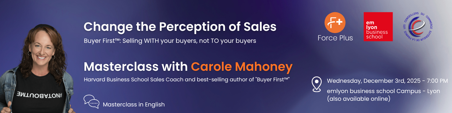 In this 90-minute masterclass, Carole Mahoney (Sales Coach at Harvard Business School and best-selling author of « Buyer First™ ») shares her cognitive-behavioral approach based on neuroscience and data from 2.4 million sales professionals.